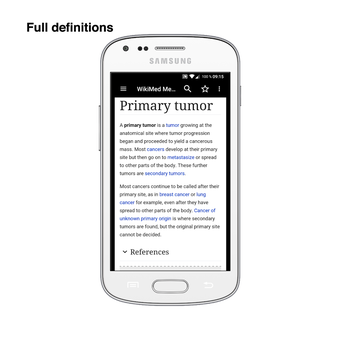 The app can be used for free, without ads or in-app purchases. It has an extensive search function that can be used to search the entire text of the dictionary for a given term.